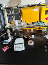 1.厚礼楼502室(微纳制造超净室1),实验室桌面较乱,用过的实验材料没有及时处理,瓶装试剂也没有按要求放入试剂柜,随意摆放在货架和实验桌上,容易造成安全隐患,要求尽快整改。